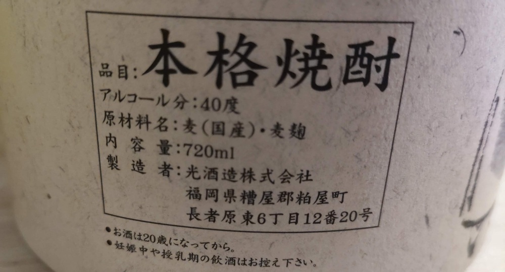 | 原料 スペック | 麦(国産)・麦麹(国産) アルコール度数40° |